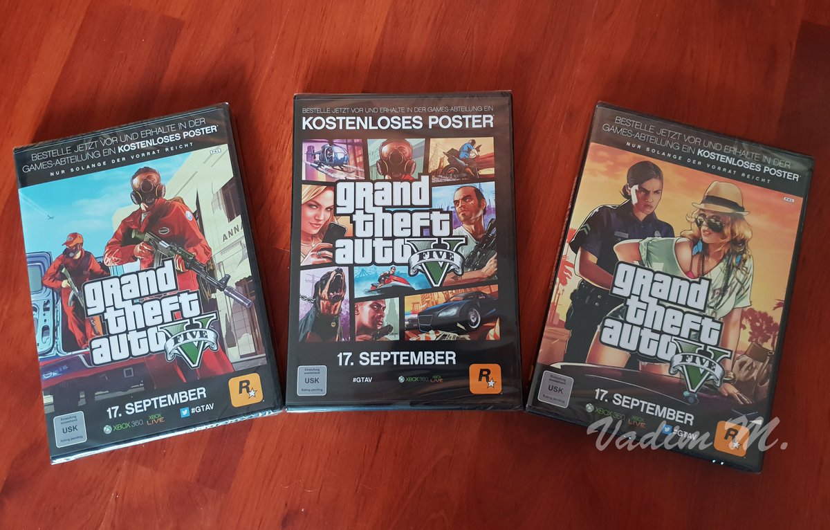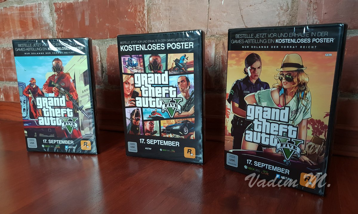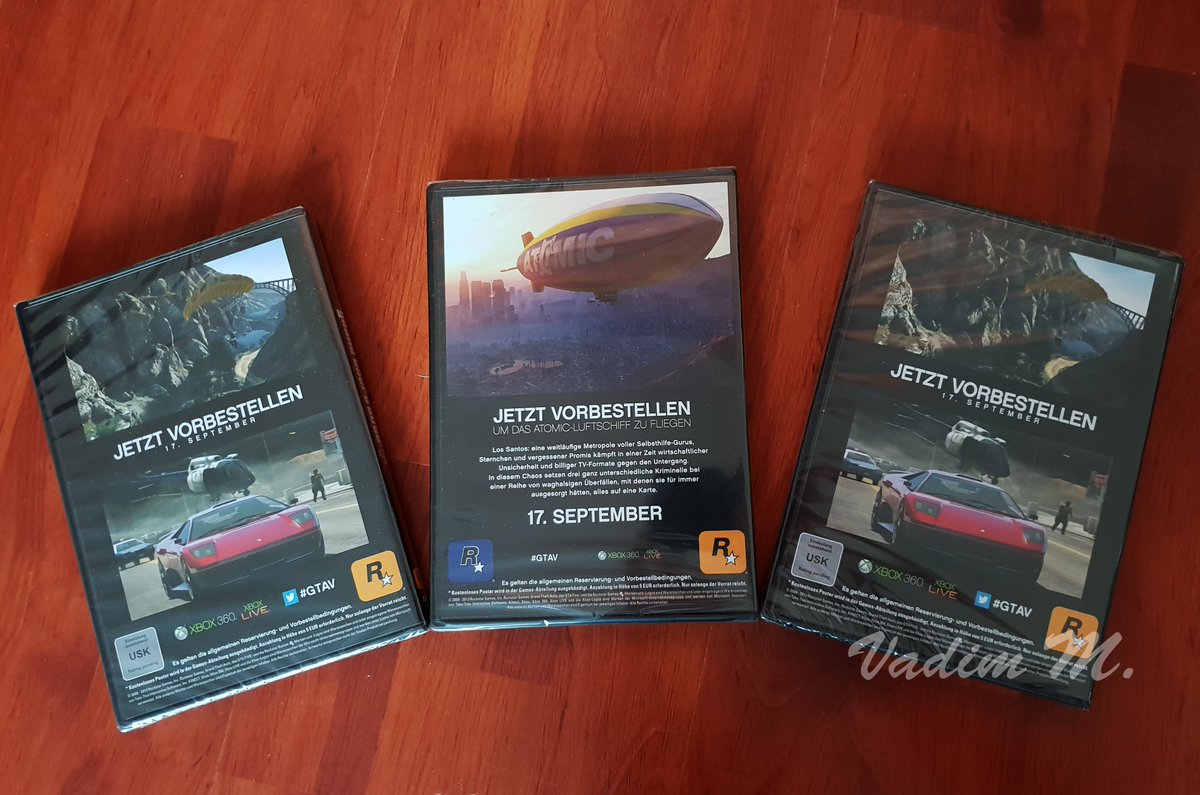 [1] Here is an interesting GTA V preorder kit I got from 🇩🇪. It seems that you could reserve a retail copy by buying this kit. It should have two GTA V postcards inside and maybe this kit cost 5 EUR. With this thing players also somehow could get a huge GTA poster for free.pic.twitter.com/iG3AK2sUXc