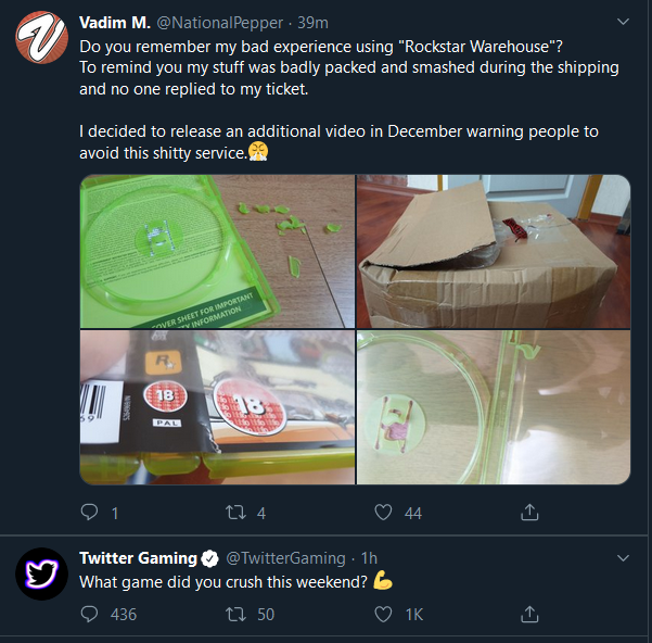 Do you remember my bad experience using "Rockstar Warehouse"? To remind you my stuff was badly packed and smashed during the shipping and no one replied to my ticket. I decided to release an additional video in December warning people to avoid this shitty service.😤pic.twitter.com/lcJXqXHDDa