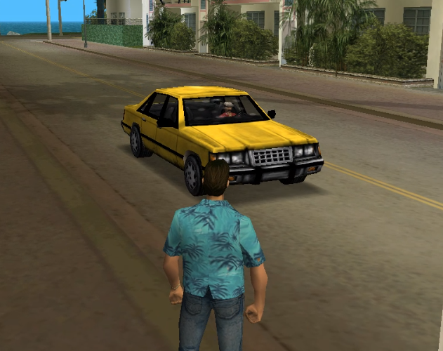That happens when the game is switching areas not everything loads correctly I only seen that once or twice its very rare to see vice city was made on ps2 hardware then ported to other systems