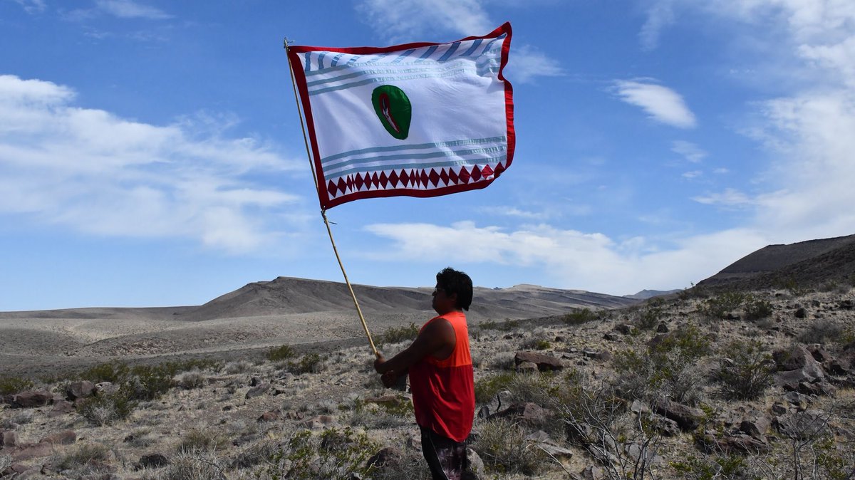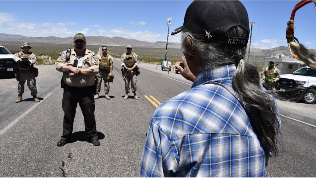 Members of the Western Shoshone Native American Tribe Protest at the gate of the Nevada National Security Site as a part of their annual “Walk on Sacred Land Ceremony.” We covered it for our Doc. about the proposed Nuclear Waste Site at Yucca Mountain for: