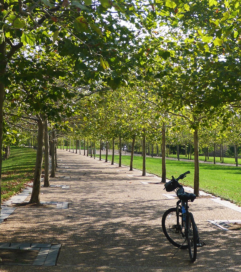 Made In The Shade Check out the tree lined walkways of the north and south ends of Gateway Arch National Park. A perfect place for bicycling, walking or running. Get off the couch and make your way to the park, it will make you feel better.
