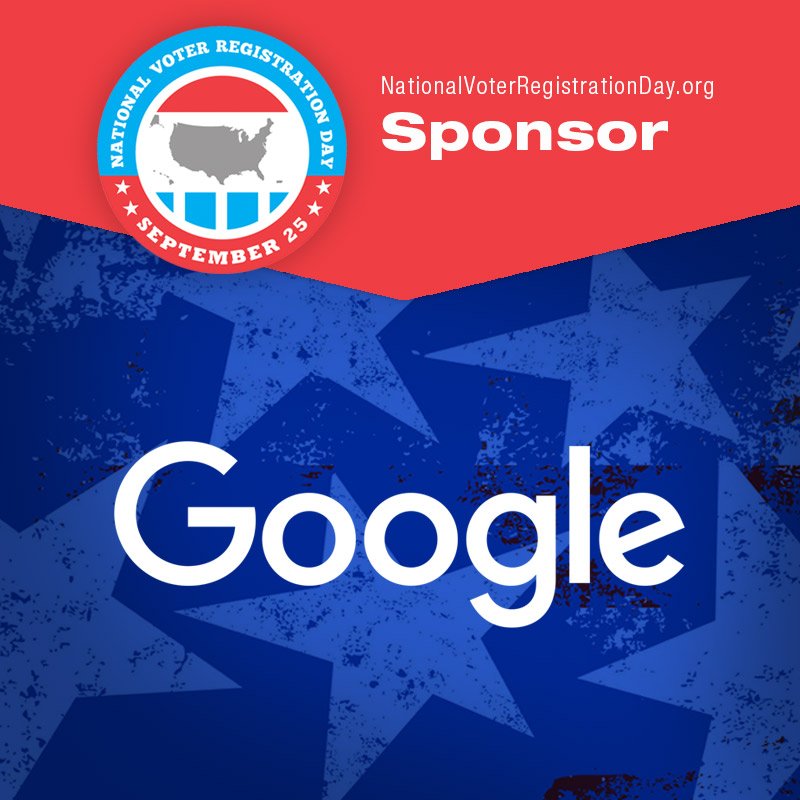Trying to figure out who our Premier Sponsors were for #NationalVoterRegistrationDay? Google it! We're happy to have @Google supporting Voter Registration for all! #MidtermsOnMyTerms Register to Vote here: http://bit.ly/Reg2Vote2018 pic.twitter.com/pHpJytvXVh