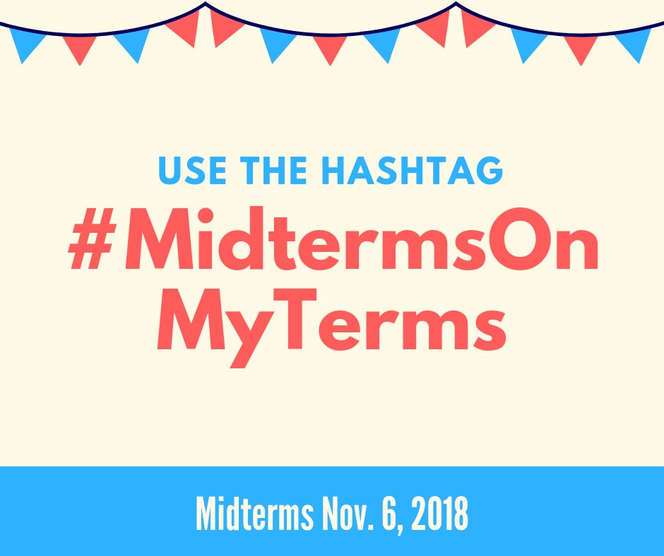 Did you notice our hashtag #MidtermsOnMyTerms ? Use it to show you're voice will be heard on November 6 and to encourage others to get registered and go vote! http://bit.ly/Reg2Vote2018 pic.twitter.com/jlUuyItO2Y