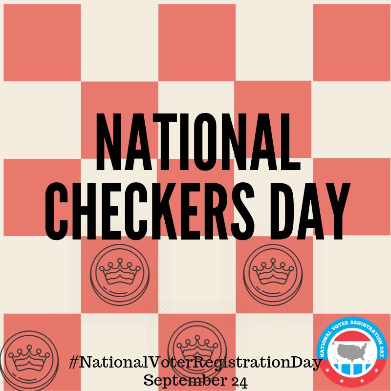 Today is #NationalCheckersDay and tomorrow is #NationalVoterRegistrationDay ! What is your strategy for tomorrow? Use our the registration tool to get your community registered at https://nationalvoterregistrationday.org/register-to-vote/ …pic.twitter.com/xmqdsYoFSY