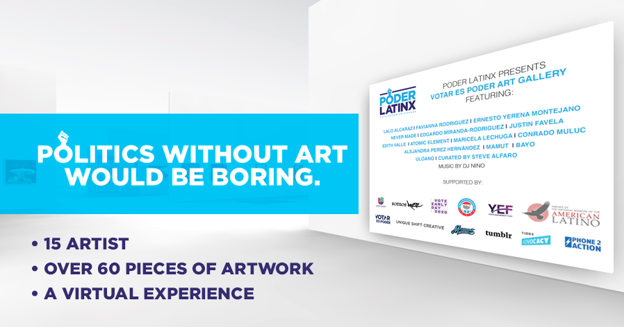 Join PODER LATINX's virtual art exhibit featuring Visual Artists, Painters, Cartoonists, and Photographers from across the country who have joined us to support the call to register to vote and vote early! Enter the virtual experience here: http://www.poderlatinx.org/arte #VotarEsPoderpic.twitter.com/ZowlT4mQyT