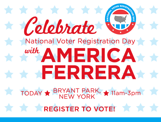 NYC #CelebrateNVRD with @AmericaFerrera, visit Bryant Park today from 11am-3pm and register to vote! #votingpic.twitter.com/LFL3HSYZsp