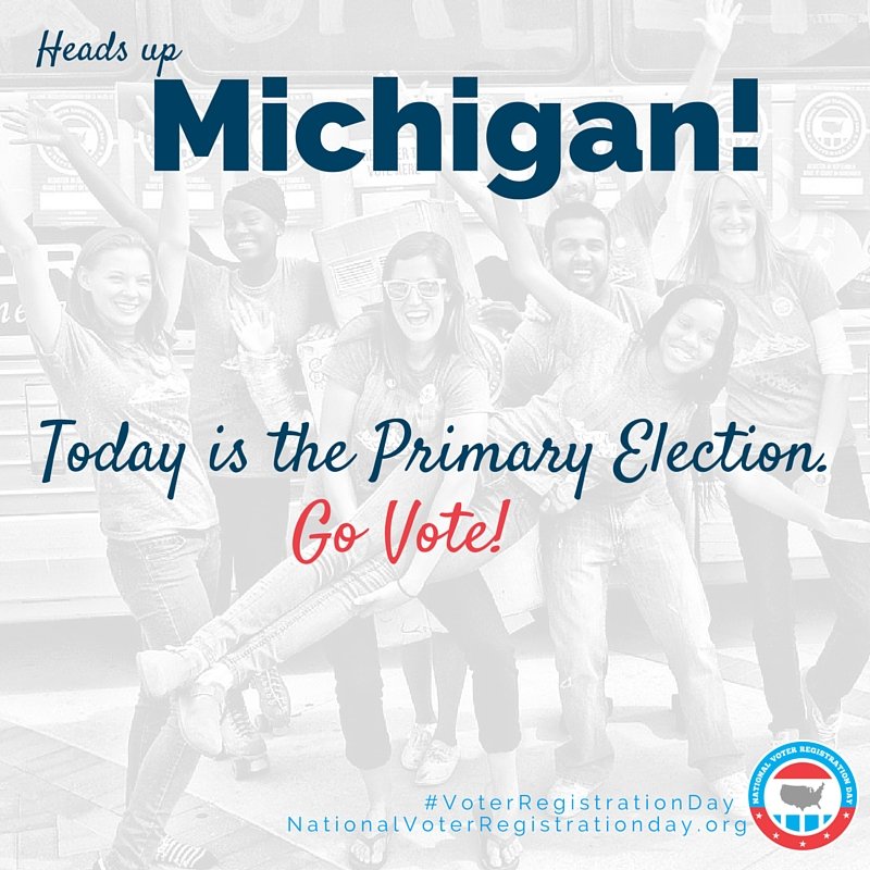 The primary election has arrived! Remember to #vote today, Michigan! #VoteMichigan #VoterRegistrationDaypic.twitter.com/IqJyUyJ6YA