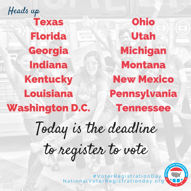 The deadline to register to #vote is today for these states! More info on how to register in these states here: http://buff.ly/2dEZVQJ pic.twitter.com/2mYk8hFbUJ