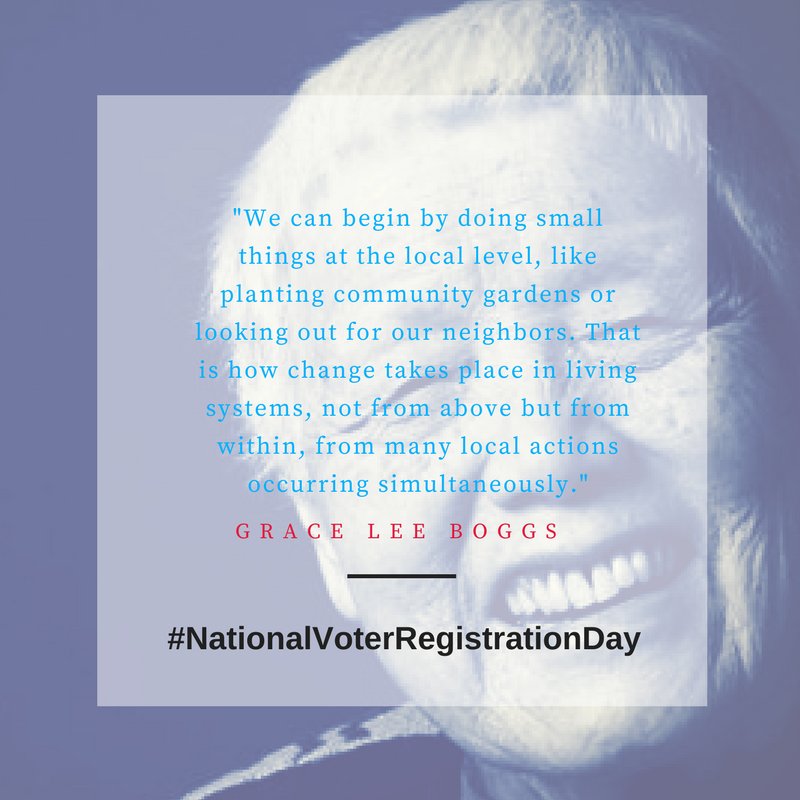 #WednesdayWisdom from the late Grace Lee Boggs. Remember that political participation starts locally. #BeVocalVoteLocalpic.twitter.com/dSB2JrvNWW