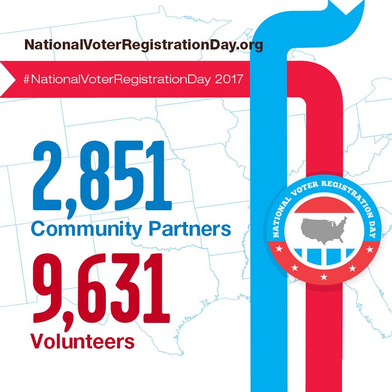 YOU made the 2017 National Voter Registration Day a success! Together, we registered 124,290 voters in 2017... Let's do it even BIGGER in 2018! https://nationalvoterregistrationday.org/2017-report/ pic.twitter.com/SElIvbG5yD
