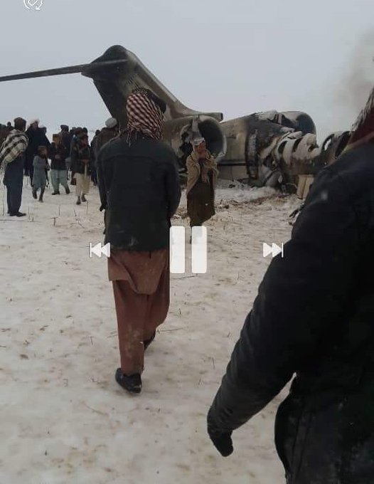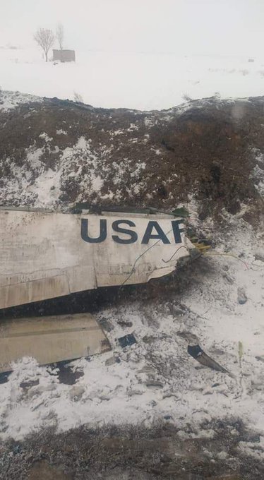 Video shows wreckage allegedly of reported plane crashed in Ghazni. The markings on the plane bear a resemblance to those belonging to US Air Force. pic.twitter.com/RN5Huz9b40