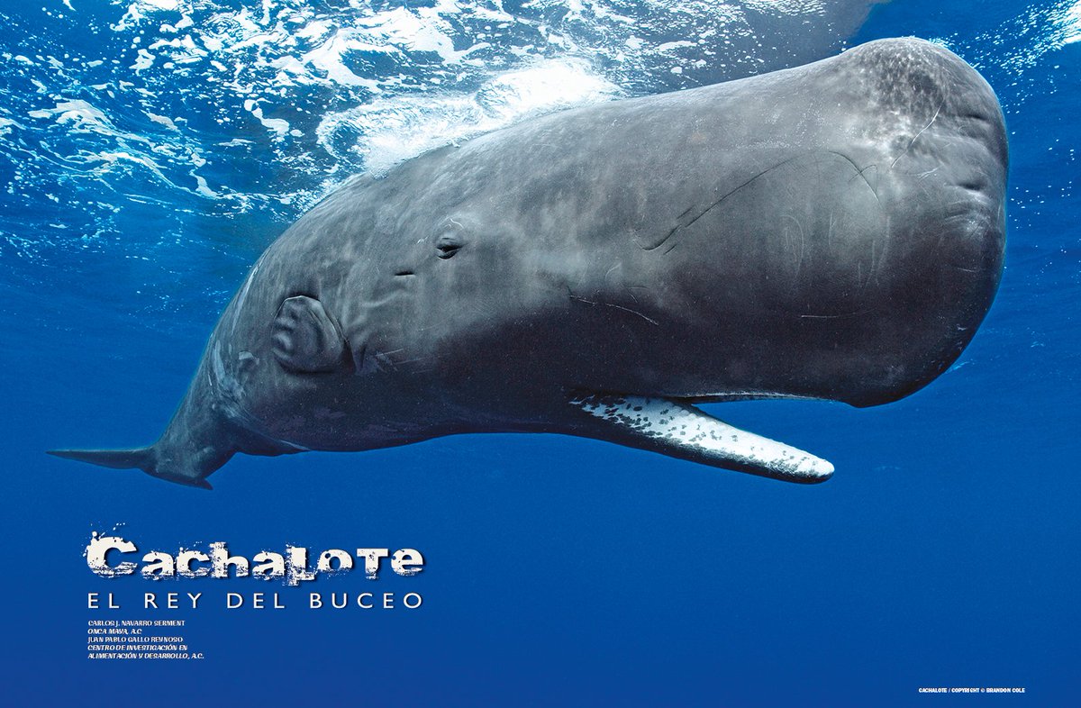 Con su enorme cabeza cuadrada, que en el caso de los machos grandes puede llegar a constituir hasta un tercio de su longitud total, el cachalote realmente es inconfundible. Llega a medir hasta 18 m y pesar 57 toneladas, siendo el cetáceo con dientes más grande del planetapic.twitter.com/k0XuvKNyvs