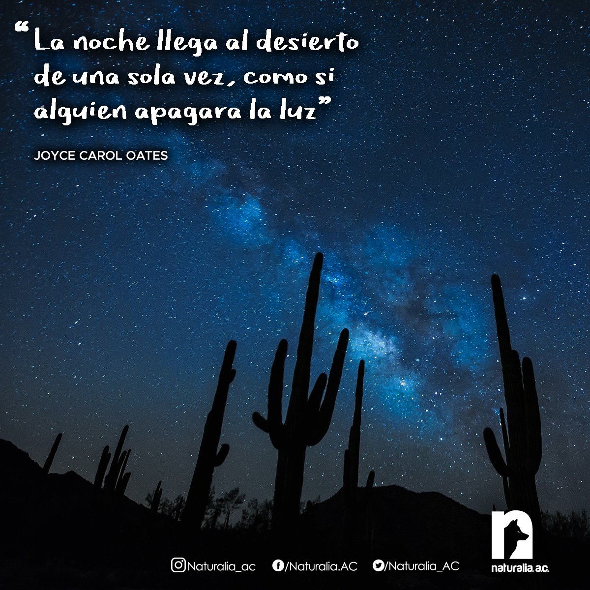 "La noche llega al desierto de una sola vez, como si alguien apagara la luz” - Joyce Carol Oatespic.twitter.com/qmydMPAQG7