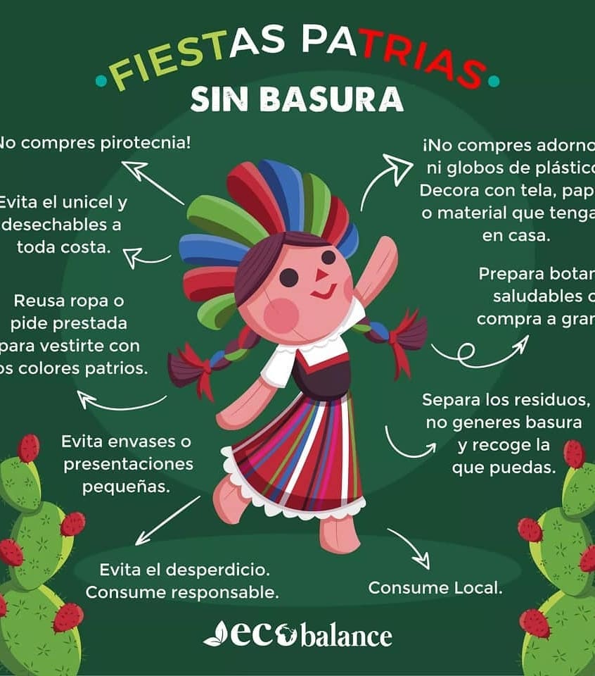 En las fiestas patrias los mexicanos gozamos nuestra nacionalidad y celebramos comiendo, bebiendo, cantando, bailando y… dejando miles de desechos. El 15 y 16 de septiembre son los días que más basura se generamos. Celebrar no es ensuciar, somos responsables del planeta.pic.twitter.com/YB6RXeXMcm