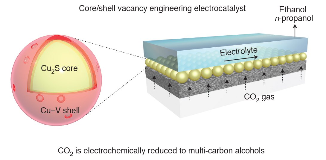 Vacancy-engineered core-shell nanoparticles, with a copper sulfide core and a vacancy-enriched copper shell, switch the selectivity of CO2 electroreduction to multi-carbon alcohols over alkenes. https://go.nature.com/2MZZcrR ($)pic.twitter.com/qtO6vzqThW