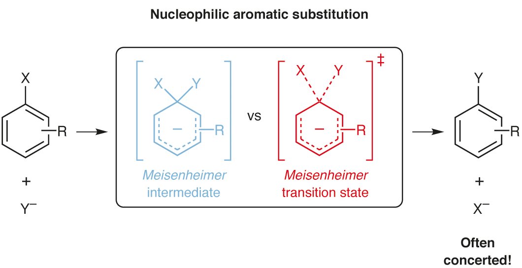 Nucleophilic aromatic substitutions have long been thought to occur primarily via stepwise mechanisms, but it has now been shown that such reactions typically proceed through concerted processes https://rdcu.be/3cPl (freeview link)pic.twitter.com/skFbUuf3Up