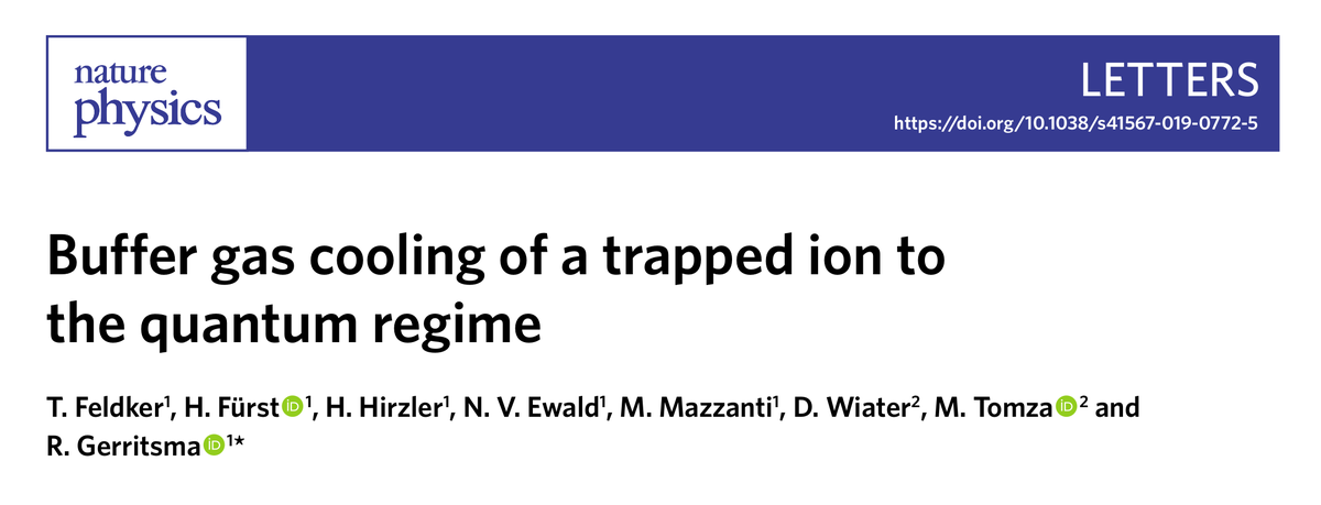 Our new research article in Nature Physics: "Buffer gas cooling of a trapped ion to the quantum regime" https://www.nature.com/articles/s41567-019-0772-5 …pic.twitter.com/0oX97EAadu