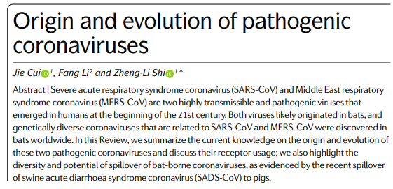 Origin and evolution of pathogenic coronaviruses Available free to read! http://nature.com/articles/s41579-018-0118-9 …pic.twitter.com/spkTYAi70U