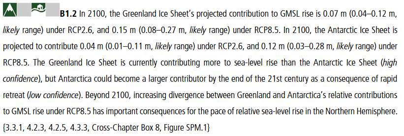 I 2100 vil smelting i Grønland bidra med mellom 0,07 (0,04-0,12) og 0,15 (0,08-0,27) meter, og i Antarktis med mellom 0,04 (0,01–0,11) og 0,12 (0,03-0,28) meter, til havstigning. Det avhenger av hvor mye og hvor raskt vi kutter utslipp. 9/ #SROCCpic.twitter.com/3mxqIIN6sA