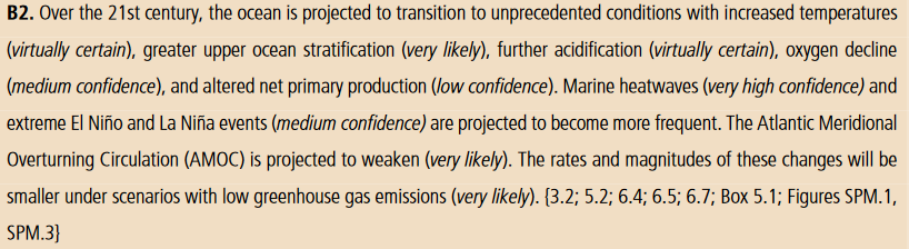 I dette århundret vil havene oppleve forhold som aldri har blitt sett før når det gjelder: - Økende temperaturer og forsuring (nesten helt sikkert) - Marine hetebølger (veldig høy sikkerhet) - Ekstreme El Niño and La Niña-hendelser (middels sikkerhet) 11/ #SROCCpic.twitter.com/1MSkvUNG2e