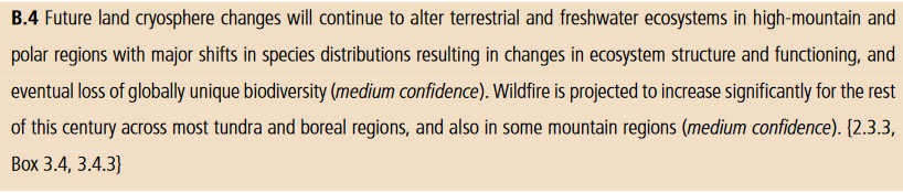 Brann i tundra- og boreale områder (og noen fjellområder) vil øker mye mot 2100 (middels sikkerhet). 14/ #SROCCpic.twitter.com/ZTNxdZAtV4