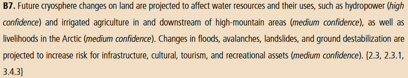 Smeltende is i Arktis og fjell har ført til negative konsekvenser for matsikkerhet, vannressurser og -kvalitet, helse og velferd, infrastruktur, samferdsel, turisme og kultur, spesielt for urfolk (høy sikkerhet). Ulemper og fordeler er ulikt fordelt (høy sikkerhet). 6/ #SROCCpic.twitter.com/TA1391hNfn