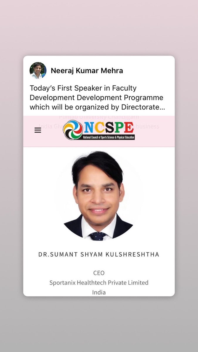 It is amazing to collaborate the 6 days Faculty Development Programme “Celebrating and Reviving Physical Education and Sports Sciences in XXXII Olympiad”organised by Directorate of Sports, Punjab University, Chandigarh in collaboration with NCSPE