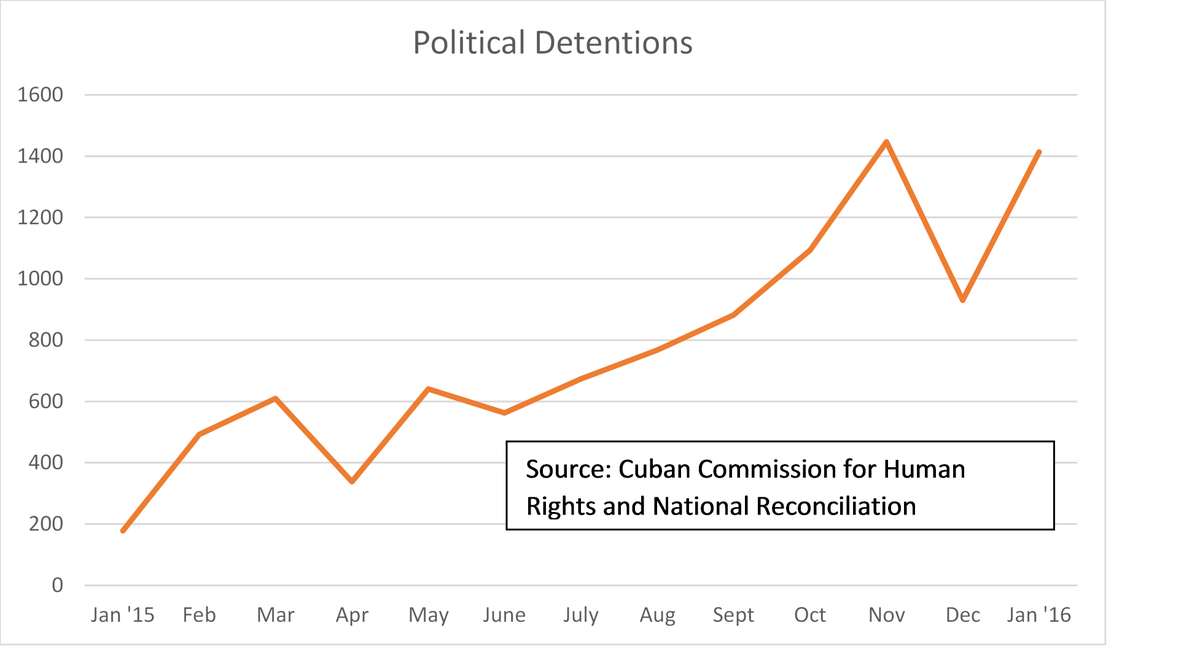 Cuba: Dramatically increase # of political arrests; score “historic” visit fr Pres Obama. Just wrong.