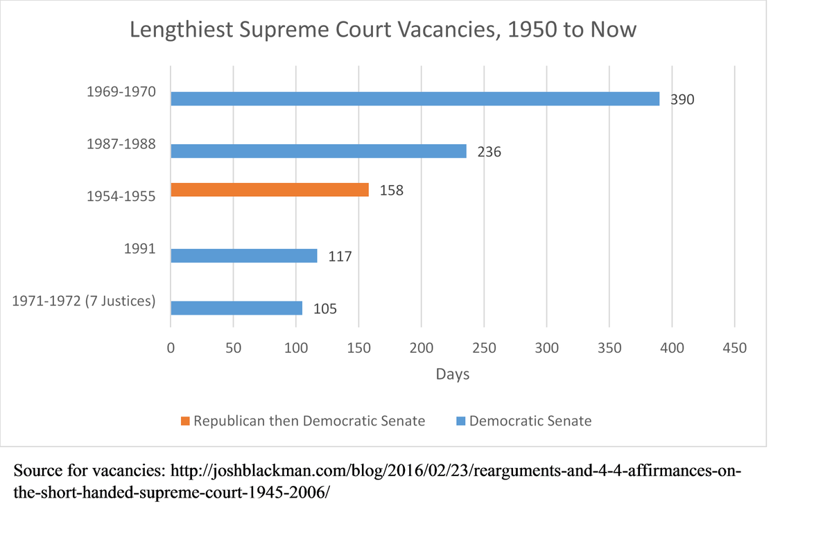 Senate Democrats have an interesting history when it comes to lengthy Supreme Court vacancies.