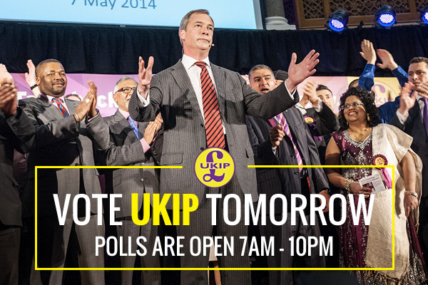 Remember to Vote UKIP tomorrow. Polls are open from 7am until 10pm.pic.twitter.com/AYg5eQTbK7