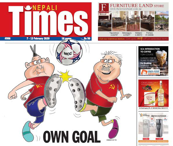 The most vehement criticism of the MCC is not from the opposition NC, but from the Dahal-backed faction within the ruling party. Dahal is impatient to replace Oli & it's looking like he is scoring an own goal for Nepal by using the MCC to undermine the PM.https://www.nepalitimes.com/banner/own-goal/ …