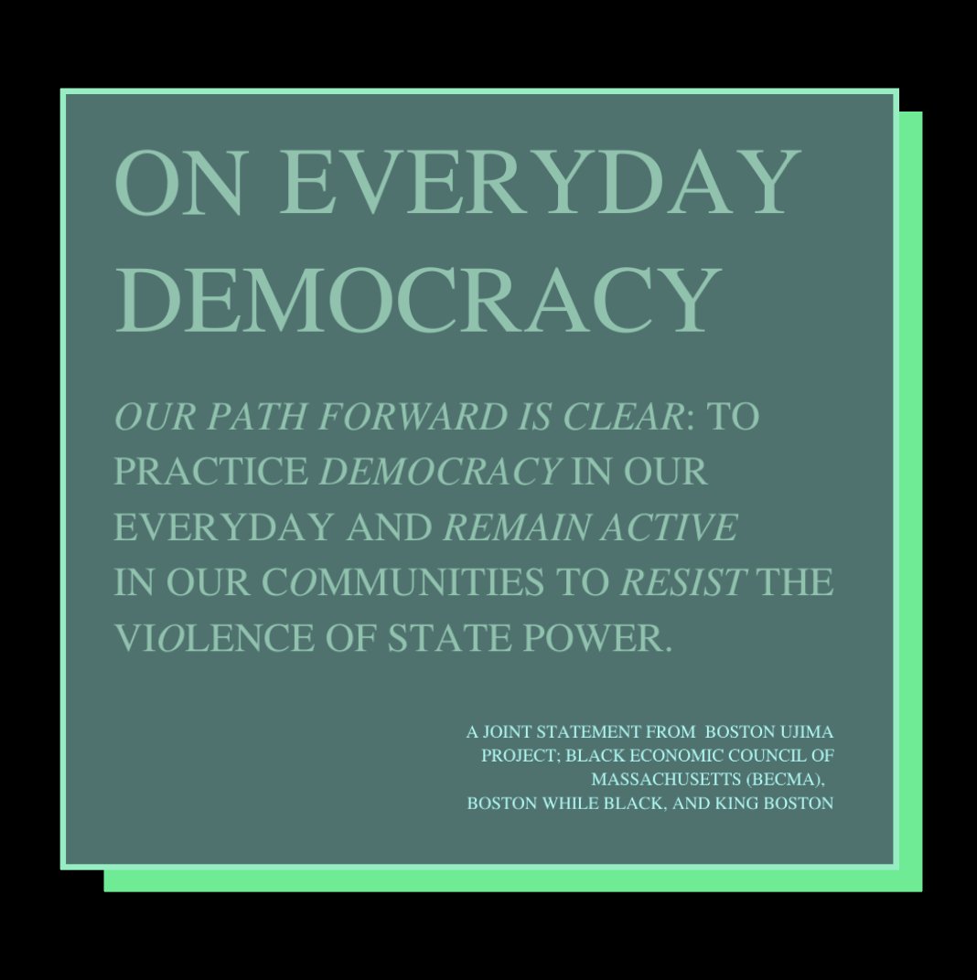 As you fight disinformation, urge officials to #counteveryvote, or take to the streets — look for an org you can join to start practicing #everydaydemocracy in your community. For inspiration, check out this piece by from NEC member org @UjimaBoston: https://bostonujima.medium.com/on-everyday-democracy-19e96fa03331 …pic.twitter.com/BoRJkUs7FI