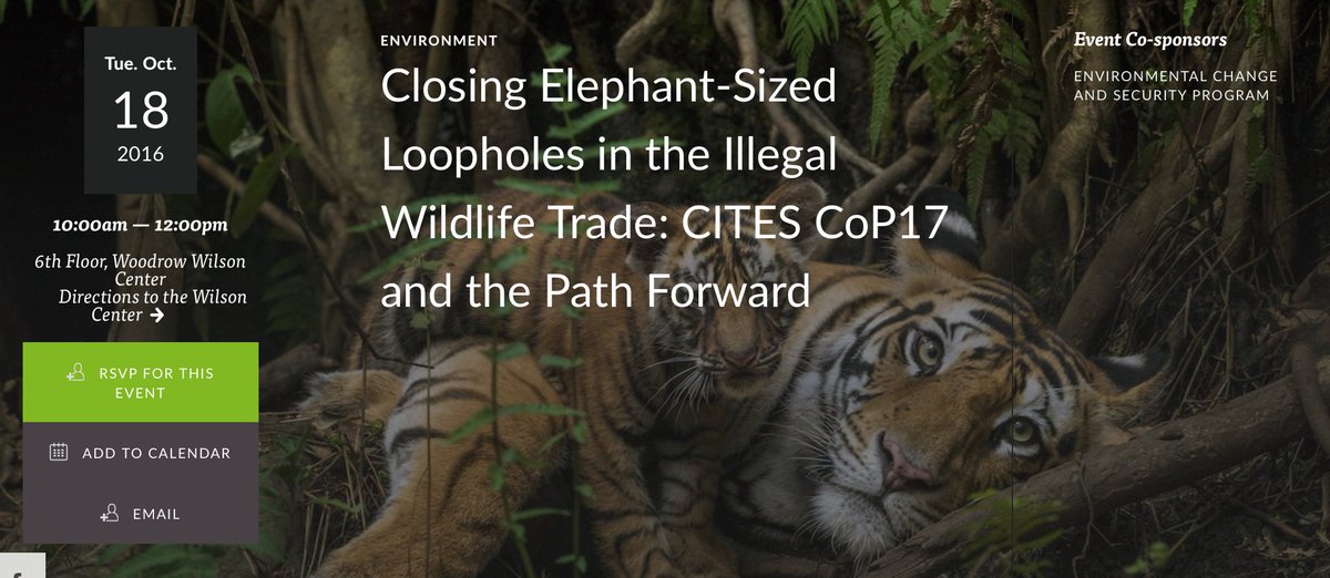 Come to our @wilsonCEF's event here on Tuesday, October 18, 10am. Fellow and #wildlifetrafficking expert @sguynup will co-chair.https://twitter.com/sguynup/status/786042849242456064 …