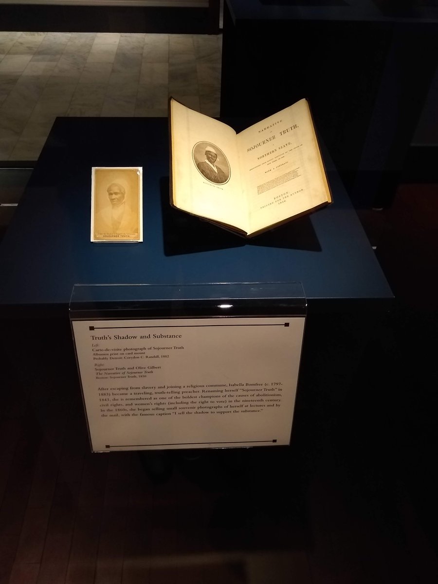 Here's a reminder that the 1st ed of Sojourner Truth's Narrative & one of her iconic "I sell the shadow to support the substance" carte-de-visite photographs are on exhibit in the