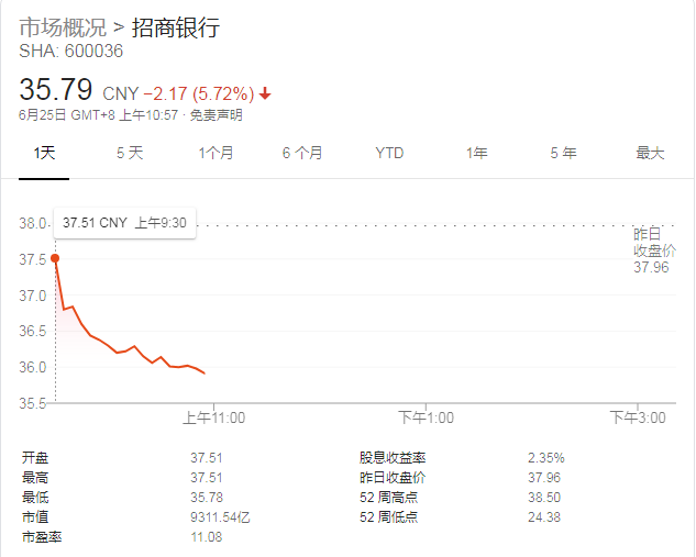 #重磅 招商银行、交通银行、浦发银行在涉嫌违反朝鲜制裁中拒绝遵守传票,这可能导致美国的制裁,目前三家银行股价大跌,跌幅最大的是招商银行为5.72%!pic.twitter.com/kYiOkQqNn5