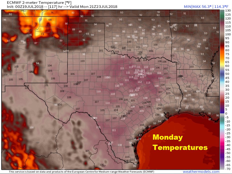 Heat advisories & heat warnings are likely in our area this weekend -Monday. Monday looks like hottest day of stretch. Look at these modeled temperatures... OUCH!!!pic.twitter.com/eIeFpONK64