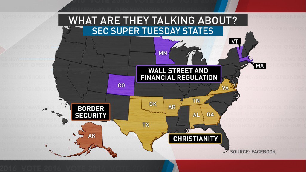 @NewsHour Basically, that map says the south +Alaska are Pro Republican & fake christians and the north is Pro#BernieSanders.#FeelTheBern -