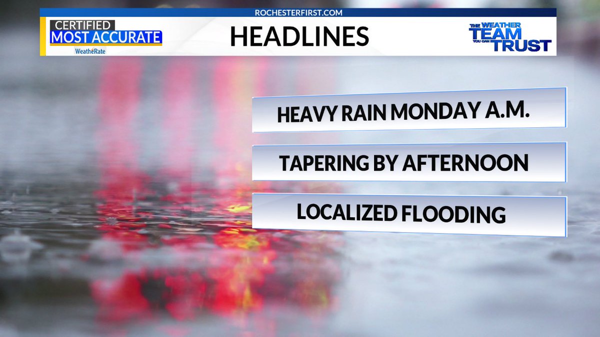 Rain moves in tonight, initially light, but will pick up in intensity by Monday morning, Plan on a soggy ride into work, with the heaviest rain falling from sunrise until about noon. Many spots pick up 1-2" of rain. Flooding possible.