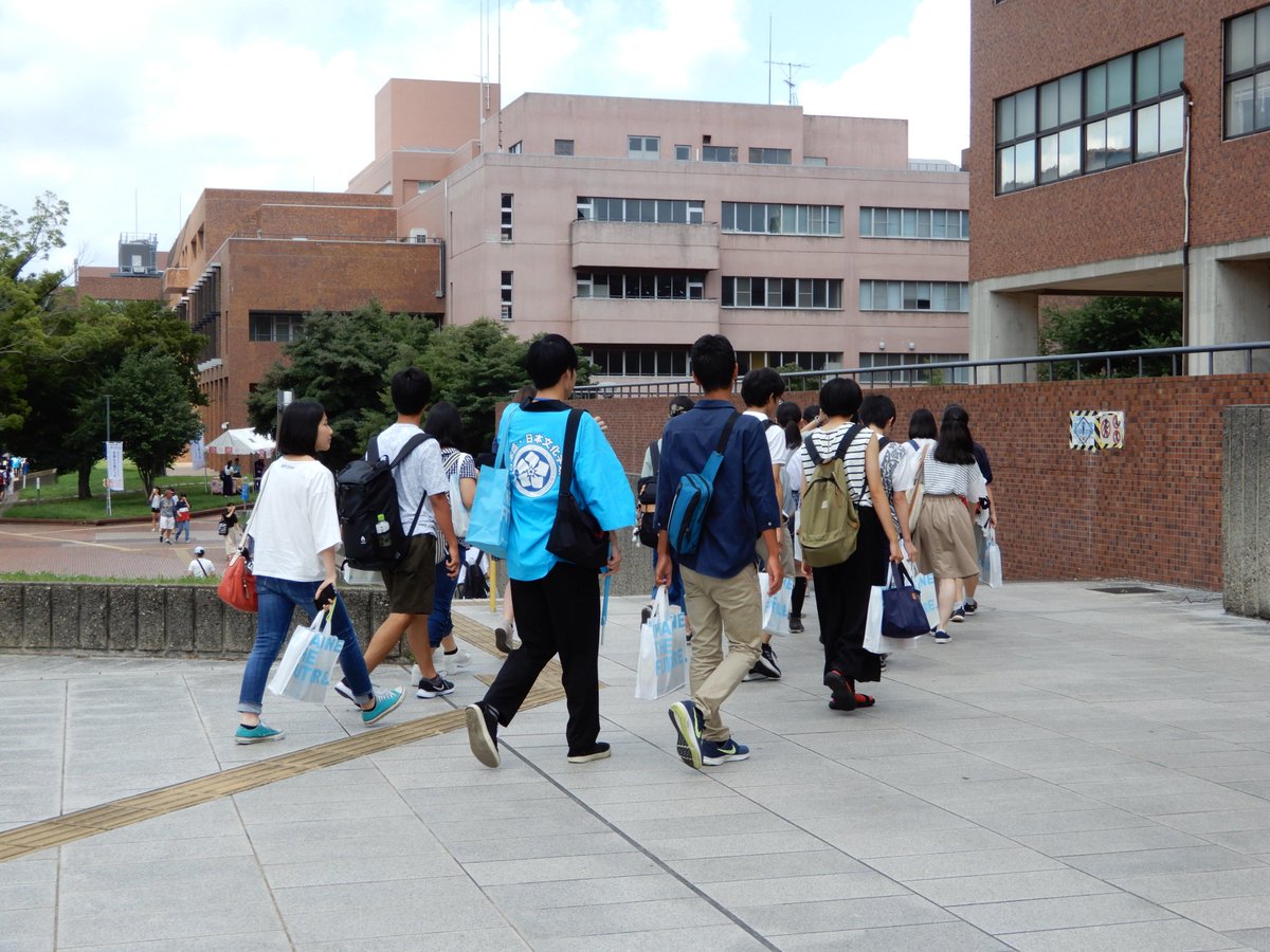 午前の部の学内見学ツアーの様子です。 猛暑のため、午後の部では、中央図書館は遠くから眺めることになりました。pic.twitter.com/vkHYOmTQ3t