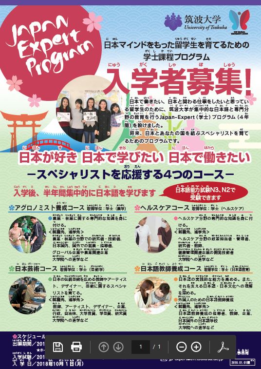 【Japan-Expert(学士)プログラム】 2018年度学生募集 Web出願受付中! 4月3日17時まで受付。日本国内または母国等における日本関連企業での就職を希望する留学生のための4年間の学士プログラムです。日日では、「日本語教師養成コース」を開設しています。 詳細はこちら→http://jp-ex.tsukuba.ac.jp/ pic.twitter.com/lPn6PtofMH