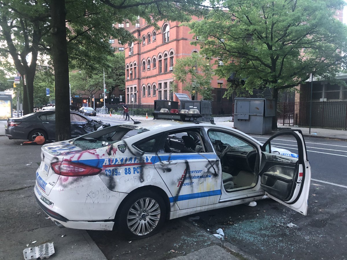 Things were largely peaceful at Classon and Lafayette avenues in Brooklyn until one protester began throwing eggs at officers just now (11pm). Dozens of officers charged, pushing at least one man into the road (video) as demonstrators began throwing glass bottles at the police.pic.twitter.com/aRAuqvpGXs