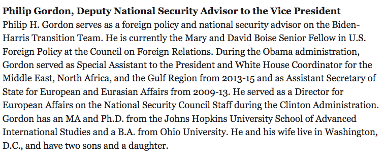 Another Obama admin official, longtime State Department Middle East veteran Phillip Gordon, the author of a recent book chronicling US' disastrous regime change strategies, named deputy National Security Adviser to Kamala Harrispic.twitter.com/AK9MKNC8hh