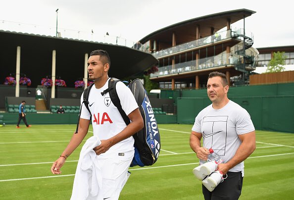 @Spurs_India fan@NickKyrgios walking through@Wimbledon Tennis Club in our new kit!