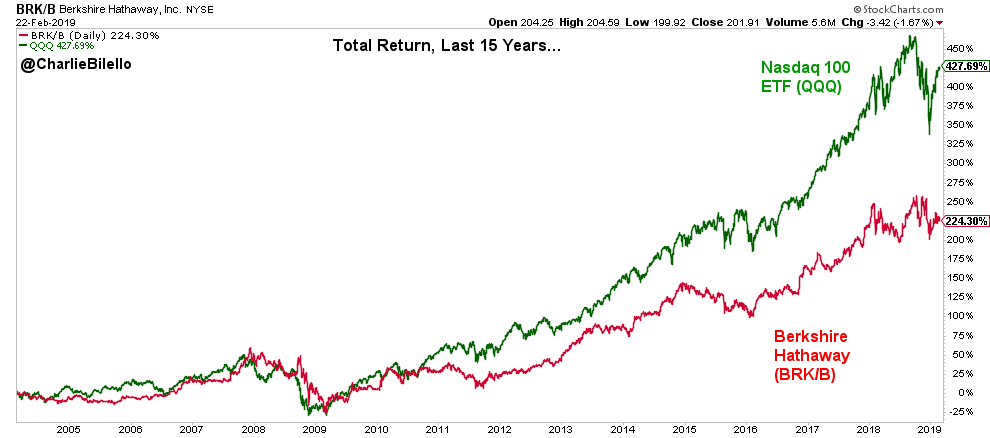Total Return, Last 15 Years... Berkshire Hathaway: +224% Nasdaq 100: +428%pic.twitter.com/WaoBMiQCCz