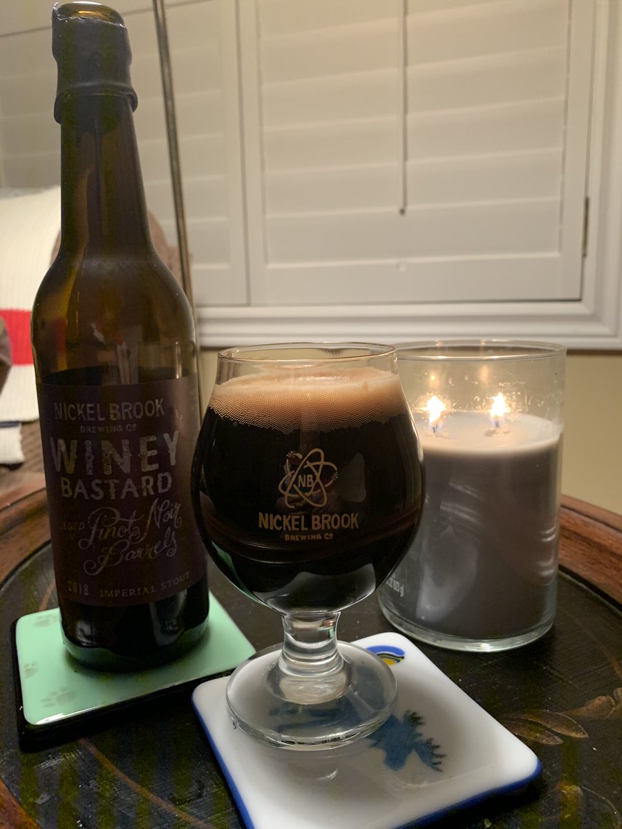 game tonight. From @NickelBrookBeer, this Winey Bastard (2018) Pinot Noir Barrel-Aged Imperial Stout. Rich flavours. Subtle red wine over chocolate, coffee & fruit. 11%. Savouring this one.pic.twitter.com/QHhgWU34oE