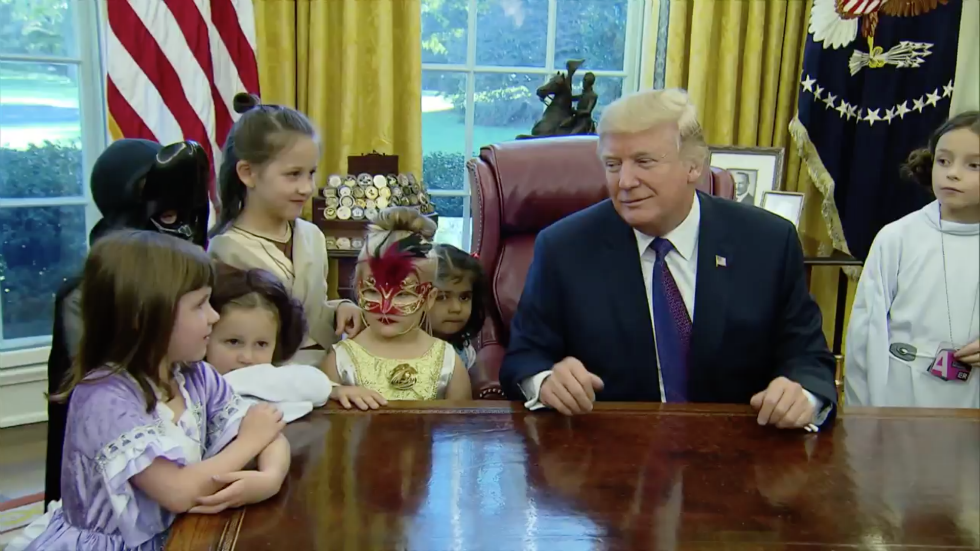 WATCH: Trump meets reporters' kids at Halloween event: "I cannot believe the media produced such beautiful children" http://hill.cm/VD5kzKN pic.twitter.com/7sT7QP3svM