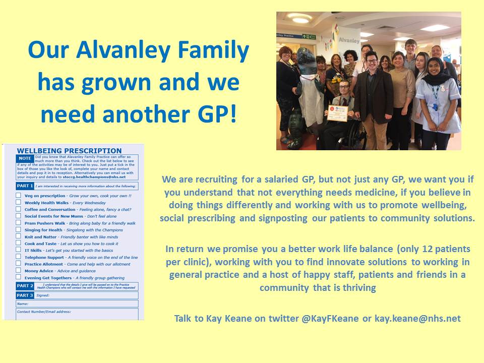 #GP that is looking for a different kind of home - we are flexible, forward thinking and pretty amazing!@NHSStockportCCG@GM_HSC@rcgp@NAPC_NHS@gp_awards#generalpracticepic.twitter.com/jtv42UYq2w