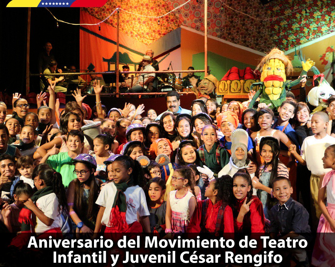 #5AñosLaPatriaEnEscena 🎬 Presidente @NicolasMaduro: El Movimiento de Teatro Infantil y Juvenil César Rengifo cumple 5 años llevando la Patria en escena..!🌞 pic.twitter.com/vYvTxKuDmr @ConCiliaFlores @VillegasPoljak @VTVcanal8 @cainemaribel21