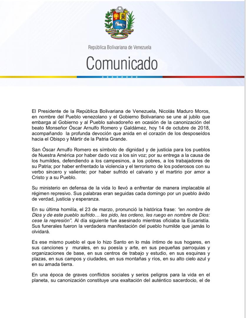 En la sesión del 3/6/015 de la AN en nombre de la MUD exhorté al oficialismo a “no deformar” la figura de Monseñor Romero, quien “luchó a favor de los pobres y abogó por la reconciliación”. “Si quisieran honrar a Monseñor Romero liberarían a los presos políticos”.