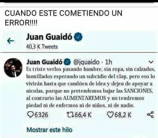 Es muy contradictorio que Uds exijan algo en este momento, Dios está haciendo justicia y les está quitando de las manos todo el dinero robado al pueblo, medicinas alimentos y sobre todo la dignidad, el pueblo se niega a acostumbrarse a vivir como indigente!! Venezuela renacerá!!